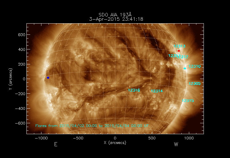 Note that some types of solar emission are more likely to be geo-effective if they originate from the western half to the disk