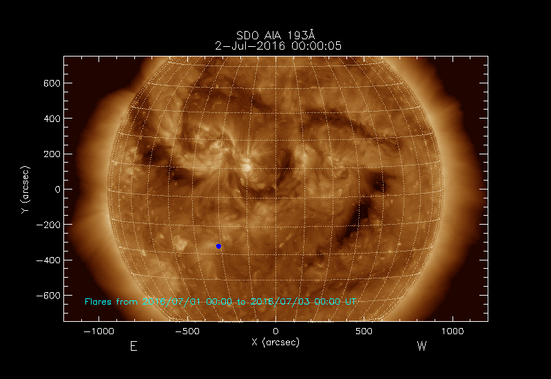 shows the locations soft X-ray flares that occurred within