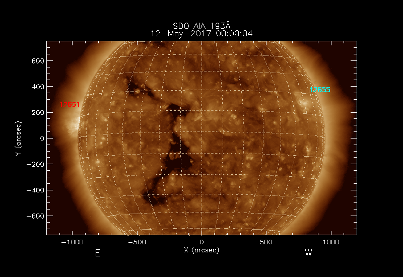 The 5 digit numbers in turquoise designate Active Regions;