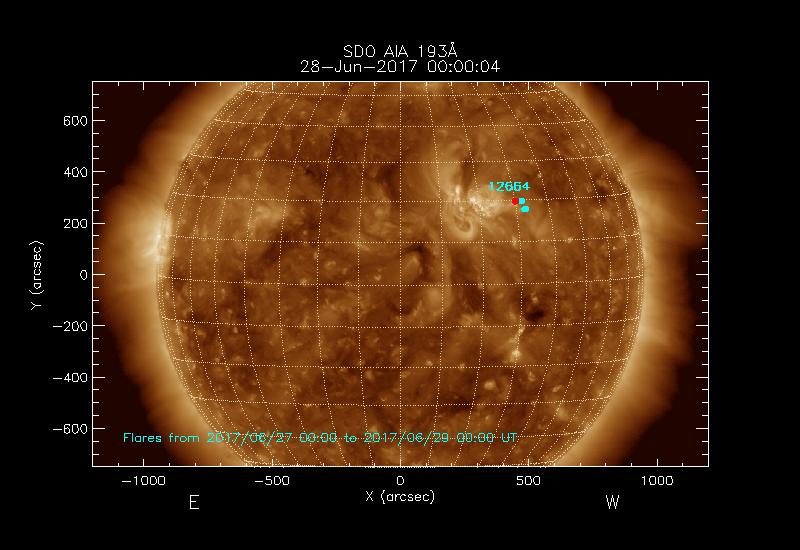 Note that some types of solar emission are more likely to be geo-effective if they originate from the western half to the disk