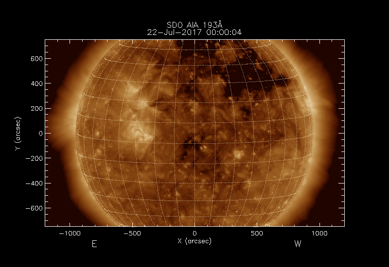 The image used is normally SDO AIA 193Å but PROBA2 SWAP 194Å images are used if no SDO data are available.