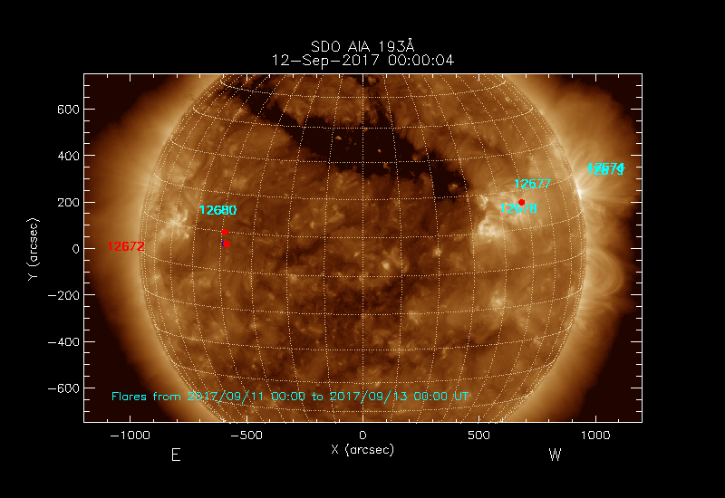 Note that some types of solar emission are more likely to be geo-effective if they originate from the western half to the disk