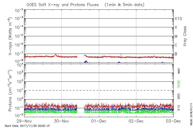 This page provides light-curves generated from GOES soft X-ray and Particle data for the date indicated at the top and the preceding three days.