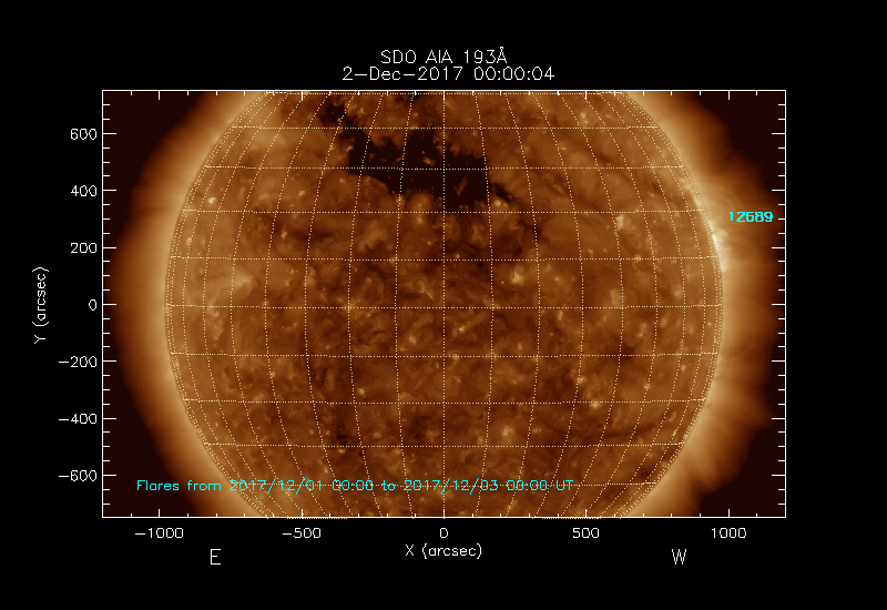 Note that some types of solar emission are more likely to be geo-effective if they originate from the western half to the disk