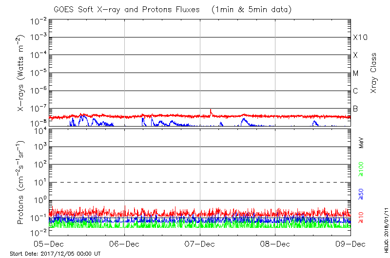 This page provides light-curves generated from GOES soft X-ray and Particle data for the date indicated at the top and the preceding three days.
