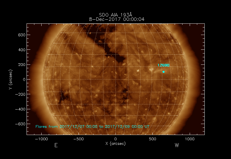 The locations of the flares over-plotted on the image are derived from the flare catalogue