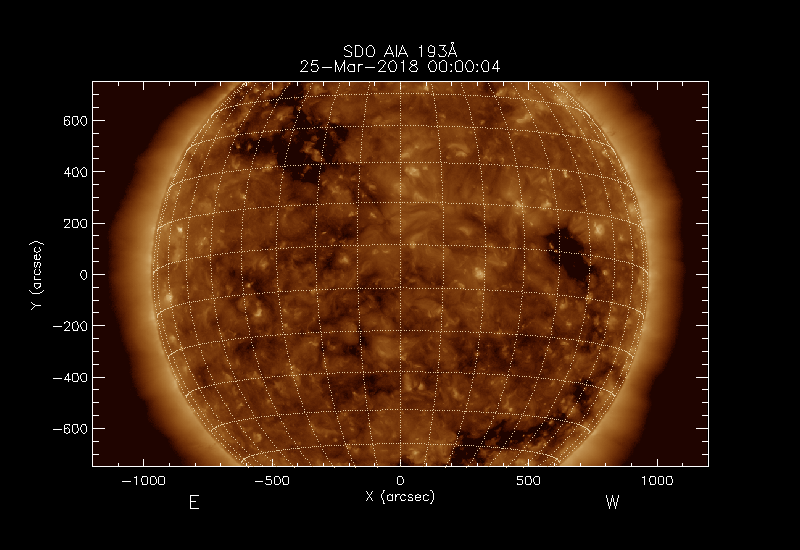 The image used is normally SDO AIA 193Å but PROBA2 SWAP 194Å images are used if no SDO data are available.