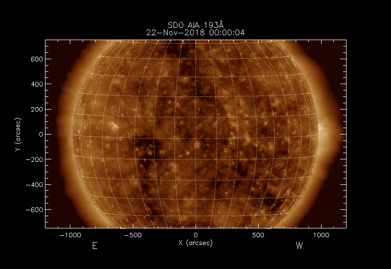 The image used is normally SDO AIA 193Å but PROBA2 SWAP 194Å images are used if no SDO data are available.