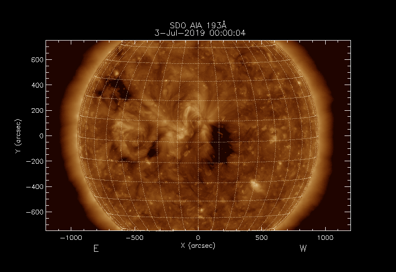 The image used is normally SDO AIA 193Å but PROBA2 SWAP 194Å images are used if no SDO data are available.