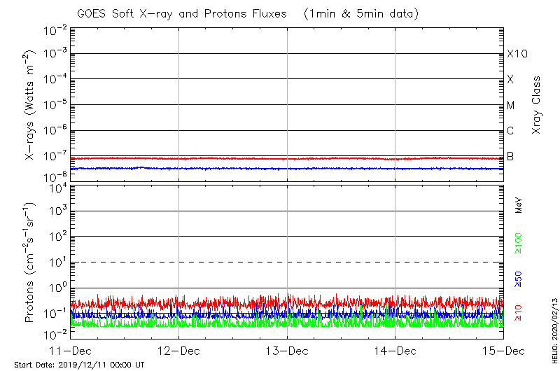 This page provides light-curves generated from GOES soft X-ray and Particle data for the date indicated at the top and the preceding three days.