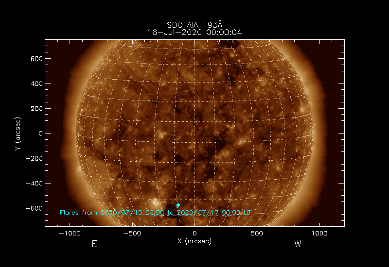 Note that some types of solar emission are more likely to be geo-effective if they originate from the western half to the disk (right of the central meridian).