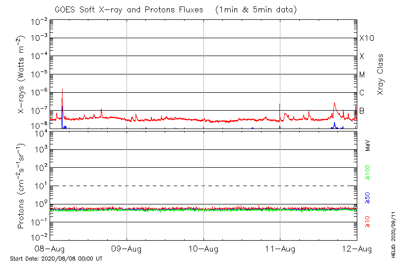 This page provides light-curves generated from GOES soft X-ray and Particle data for the date indicated at the top and the preceding three days.