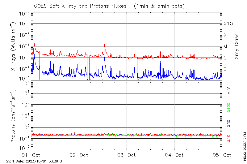 This page provides light-curves generated from GOES soft X-ray and Particle data for the date indicated at the top and the preceding three days.