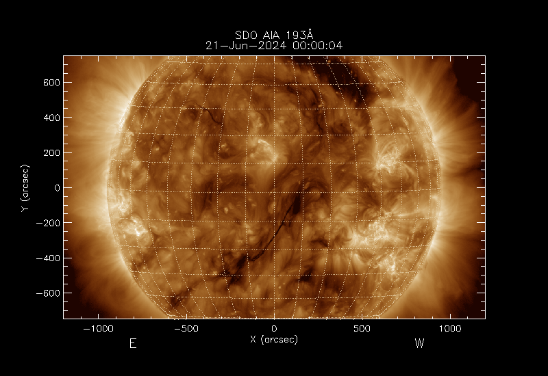 Note that some types of solar emission are more likely to be geo-effective if they originate from the western half to the disk (right of the central meridian).