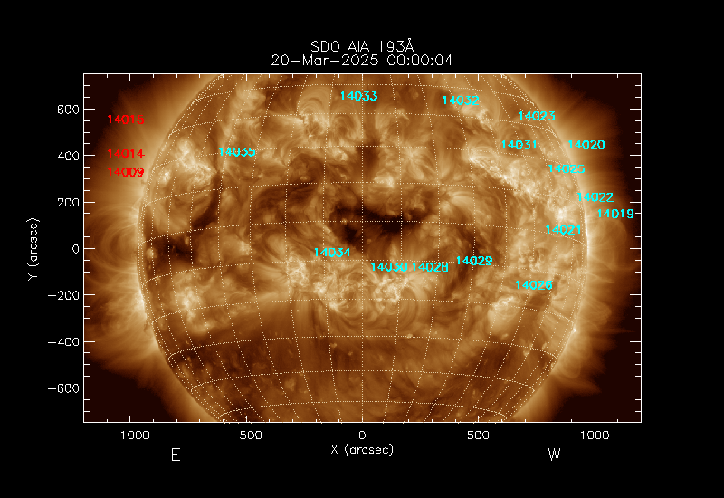 The 5 digit numbers in turquoise designate Active Regions;