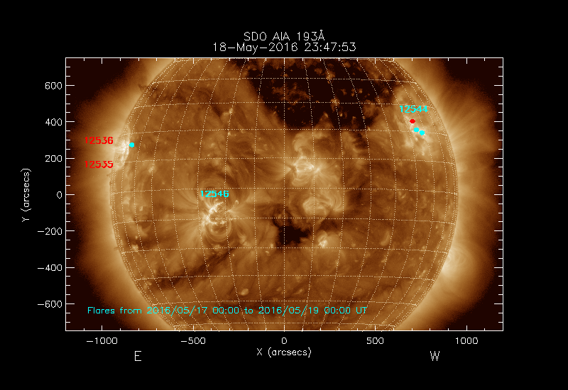 Note that some types of solar emission are more likely to be geo-effective if they originate from the western half to the disk