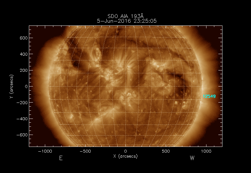 The image used is normally SDO AIA 193Å but PROBA2 SWAP 194Å images are used if no SDO data are available.