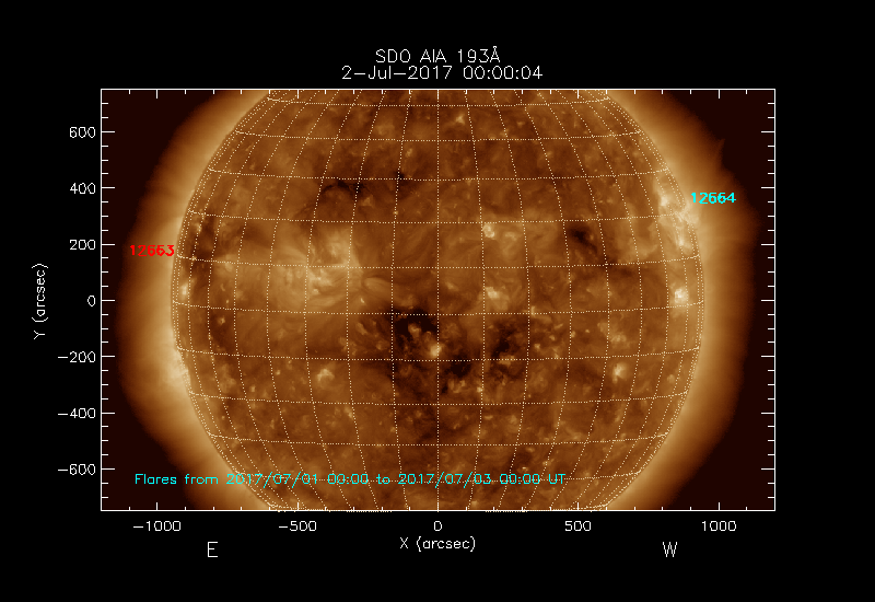 Note that some types of solar emission are more likely to be geo-effective if they originate from the western half to the disk