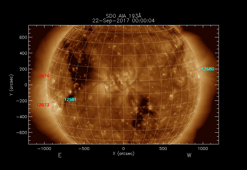 those in red (on the left hand side of the image) indicate where old Active Regions that could be returning.