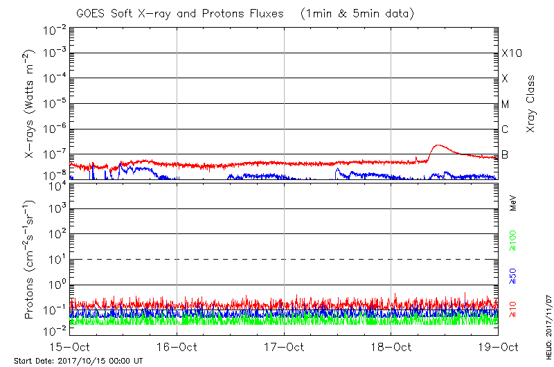 This page provides light-curves generated from GOES soft X-ray and Particle data for the date indicated at the top and the preceding three days.