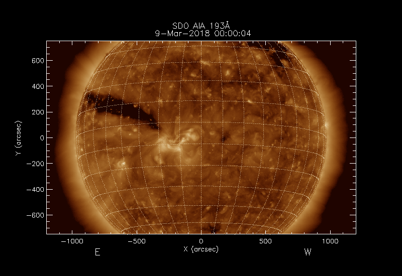 The image used is normally SDO AIA 193Å but PROBA2 SWAP 194Å images are used if no SDO data are available.