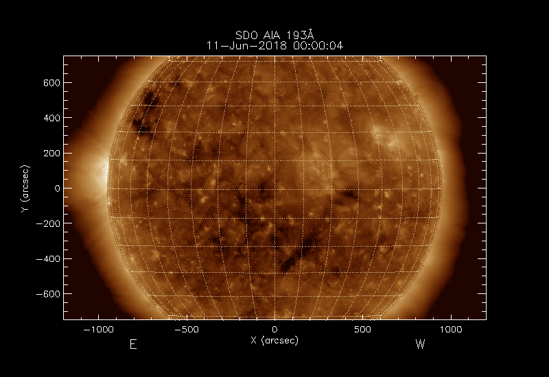 The image used is normally SDO AIA 193Å but PROBA2 SWAP 194Å images are used if no SDO data are available.
