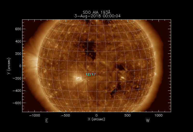 Click on an Active Region plot to display the Region Report including the region evolution and flaring history. HEC Search for NOAA Active Regions (SRS) records for this date and the day before.