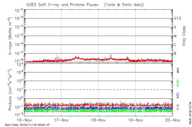 This page provides light-curves generated from GOES soft X-ray and Particle data for the date indicated at the top and the preceding three days.