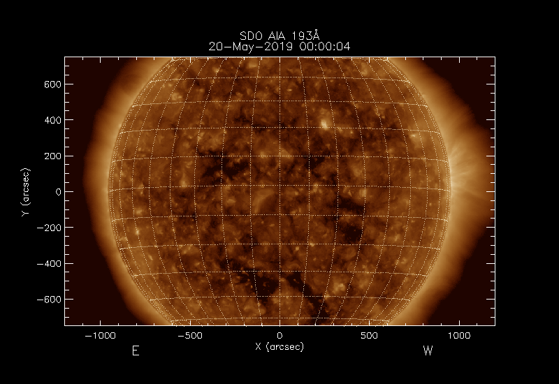 The image used is normally SDO AIA 193Å but PROBA2 SWAP 194Å images are used if no SDO data are available.
