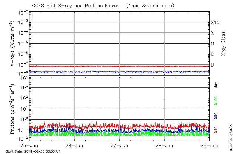 This page provides light-curves generated from GOES soft X-ray and Particle data for the date indicated at the top and the preceding three days.
