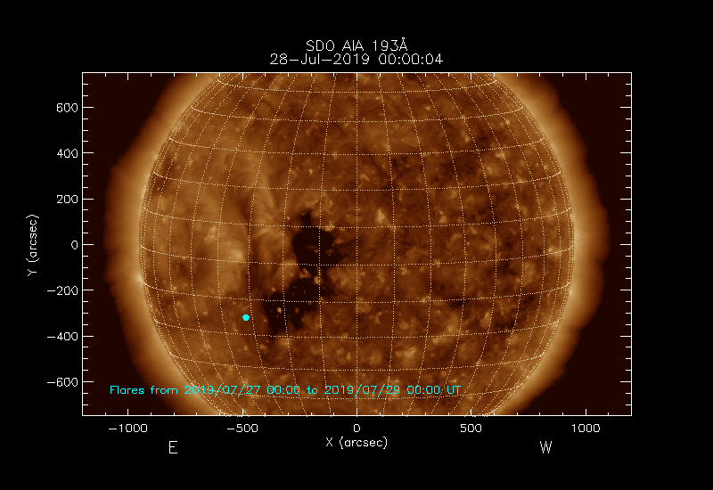 The colour of the dot gives a rough indication of when the flare occurred,