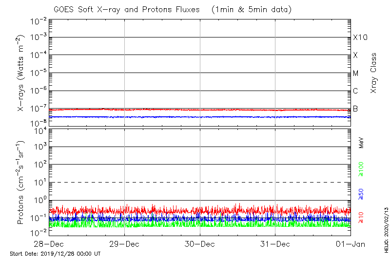 This page provides light-curves generated from GOES soft X-ray and Particle data for the date indicated at the top and the preceding three days.