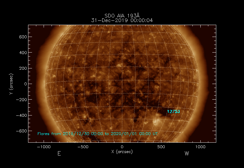Click on an Active Region plot to display the Region Report including the region evolution and flaring history. HEC Search for NOAA Active Regions (SRS) records for this date and the day before.