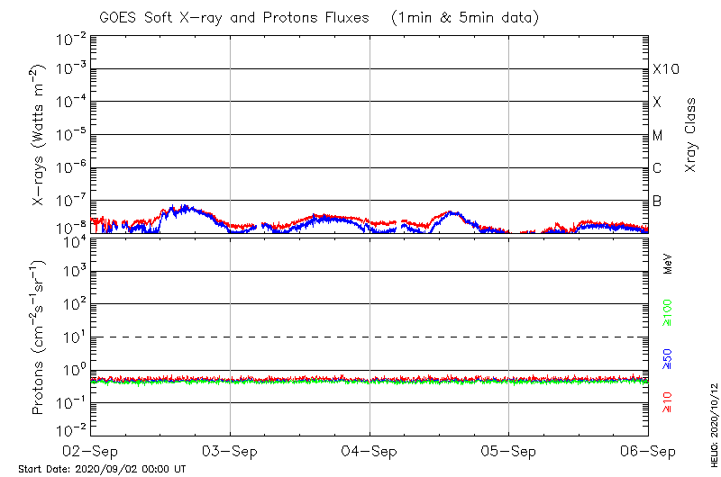 This page provides light-curves generated from GOES soft X-ray and Particle data for the date indicated at the top and the preceding three days.