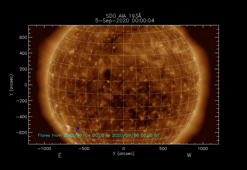 • The colour of the dot gives a rough indication of when the flare occurred,