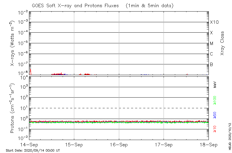 This page provides light-curves generated from GOES soft X-ray and Particle data for the date indicated at the top and the preceding three days.