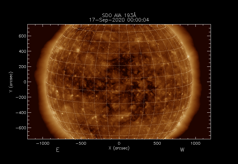 The image used is normally SDO AIA 193Å but PROBA2 SWAP 194Å images are used if no SDO data are available.