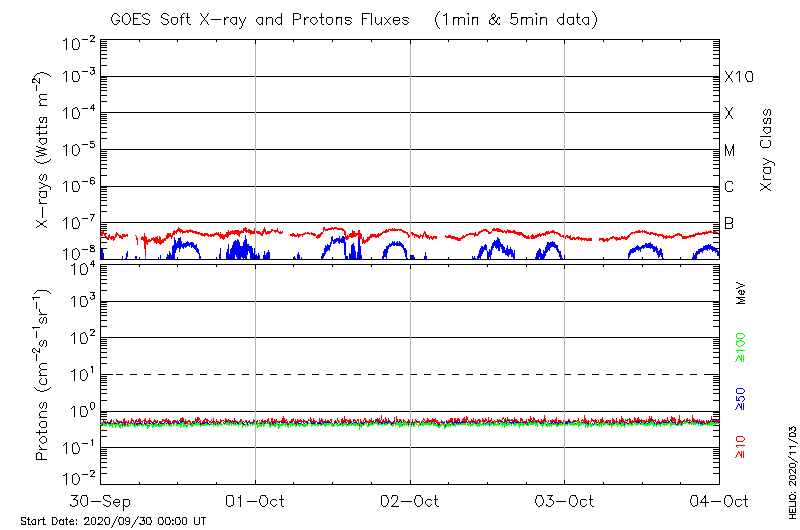 This page provides light-curves generated from GOES soft X-ray and Particle data for the date indicated at the top and the preceding three days.