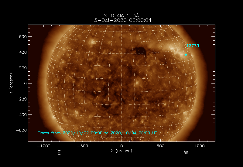 Note that some types of solar emission are more likely to be geo-effective if they originate from the western half to the disk