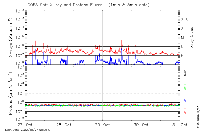 This page provides light-curves generated from GOES soft X-ray and Particle data for the date indicated at the top and the preceding three days.