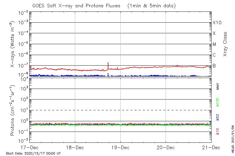 This page provides light-curves generated from GOES soft X-ray and Particle data for the date indicated at the top and the preceding three days.