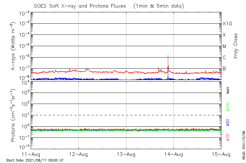 This page provides light-curves generated from GOES soft X-ray and Particle data for the date indicated at the top and the preceding three days.