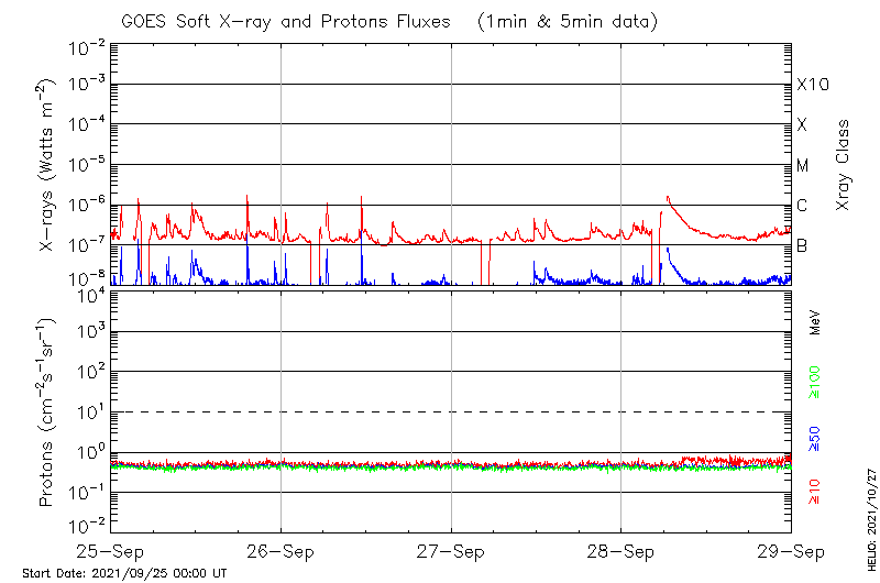 This page provides light-curves generated from GOES soft X-ray and Particle data for the date indicated at the top and the preceding three days.