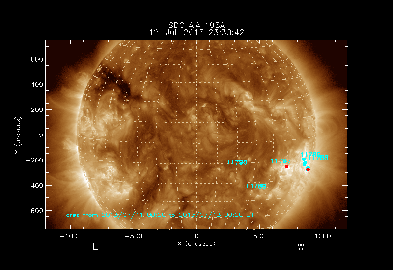 Locations of Active Regions and Flares on   2013/07/12