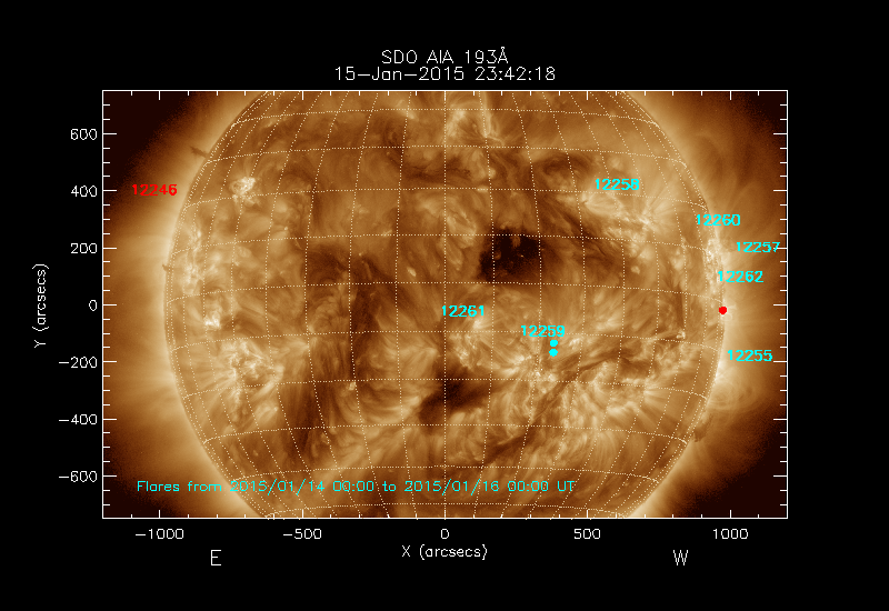 Note that some types of solar emission are more likely to be geo-effective if they originate from the western half to the disk