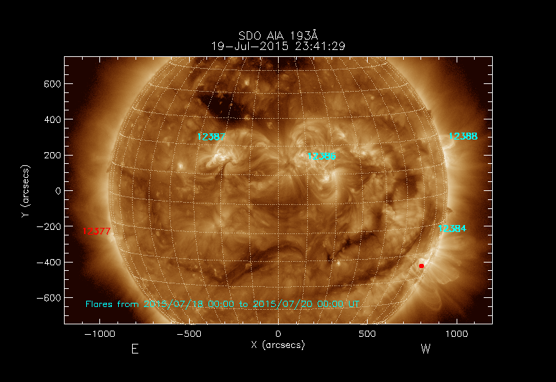Note that some types of solar emission are more likely to be geo-effective if they originate from the western half to the disk