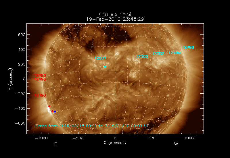 The numbers in turquoise designate Active Regions;