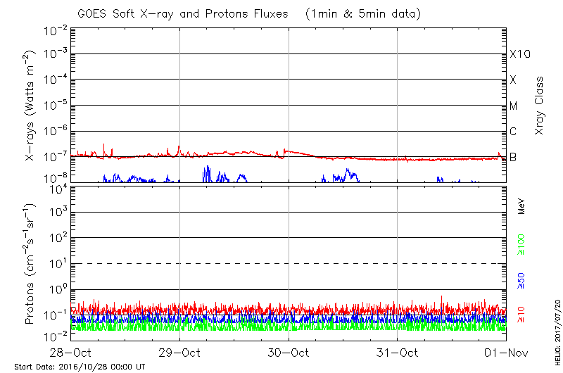 This page provides light-curves generated from GOES soft X-ray and Particle data for the date indicated at the top and the preceding three days.