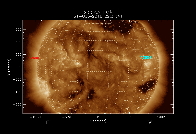The 5 digit numbers in turquoise designate Active Regions;