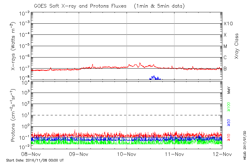 This page provides light-curves generated from GOES soft X-ray and Particle data for the date indicated at the top and the preceding three days.